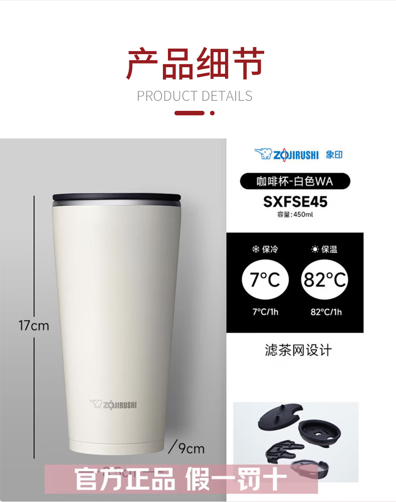 象印保温杯 型号:SM-AXE50 容量:500ml 材质:304不锈钢 尺寸:7*7*21.5cm 象印真空桌享杯 型号:SX-FSE45-WA 容量:450ml 材质 内胆:306 外壳:304 杯盖:食品级PP 尺寸:8.5*9*17cm