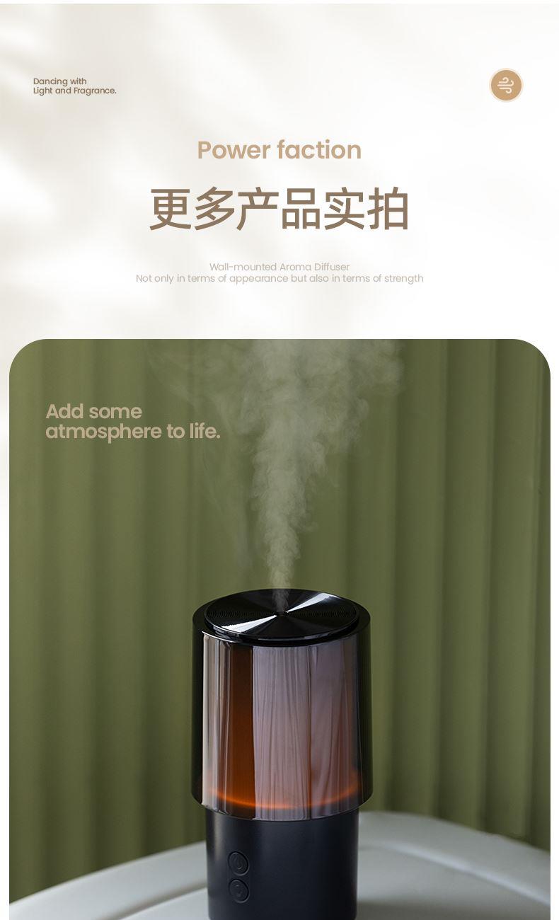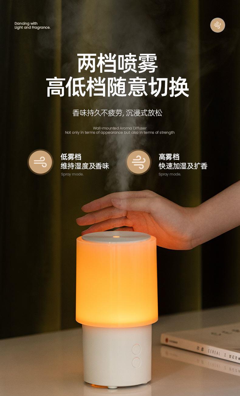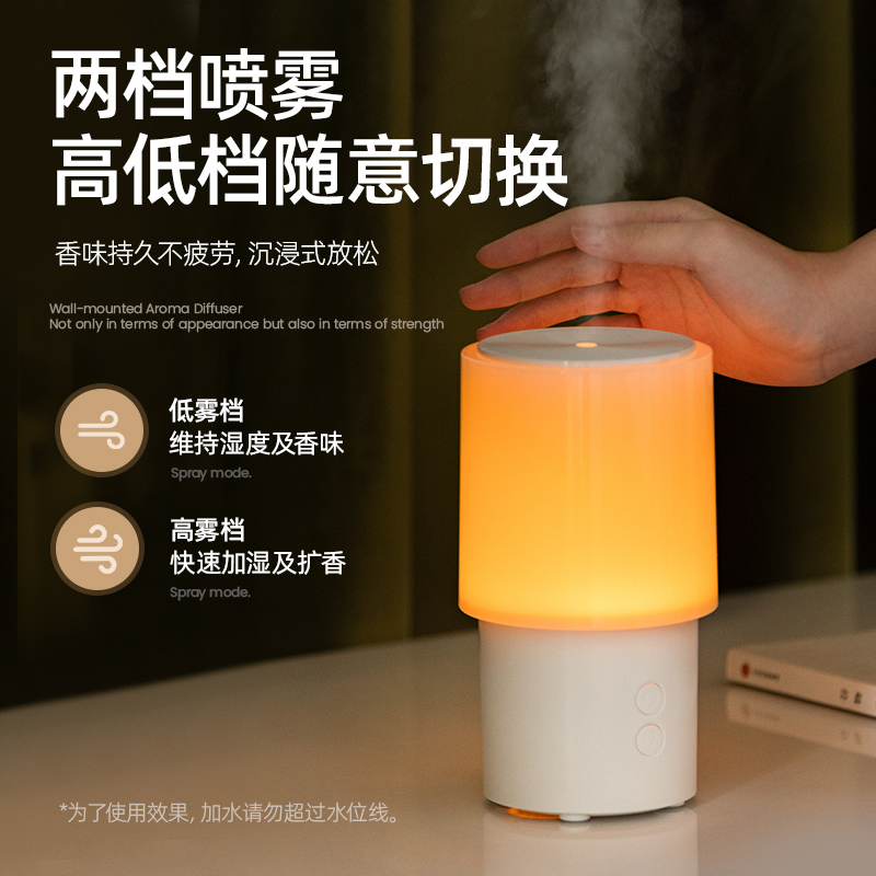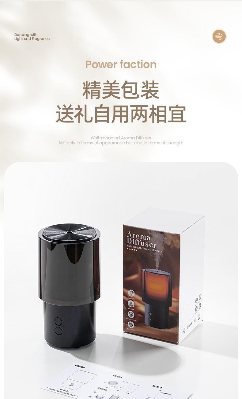 【颜色】白色、黑色 【材质】ABS+PP+PC 【重量】312g 【水箱容量】130ML 【喷雾量】15mL/h 【产品尺寸】96*196*180mm 【包装尺寸】98*98*183mm 【输入电流】5V-2A 采用差声波雾化器,通过震频将液态水分子打散细致冷雾保留下精油芬芳成分 即是香薰机,也是氛围灯,3重灯效模式,营造浪漫氛围 2档喷雾,高低档随意切换,香味持久不疲劳,低雾档维持湿度及香味,高雾档快速加湿及扩香 桌面不留积水,底部防滑,多场景使用