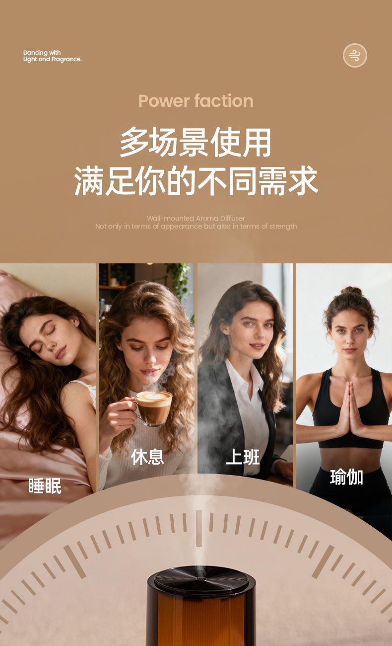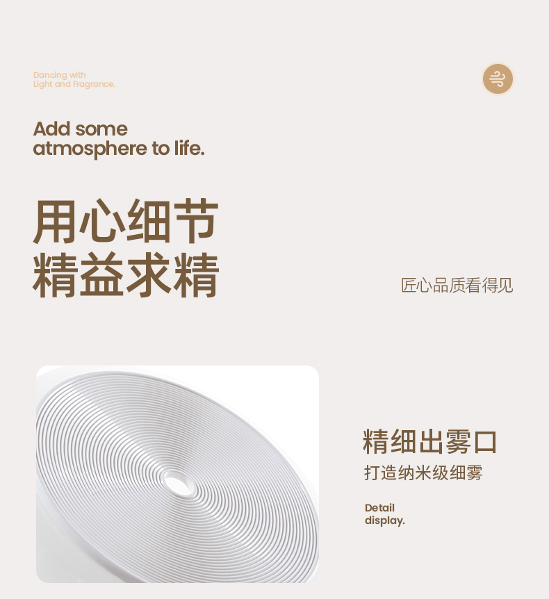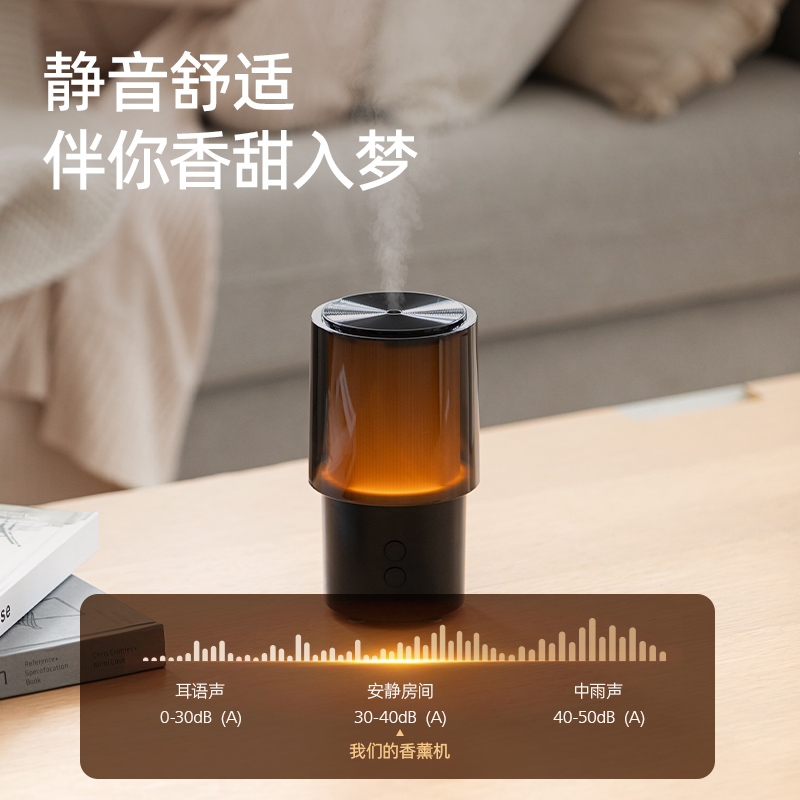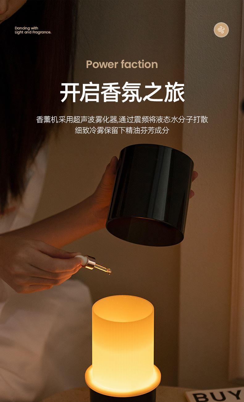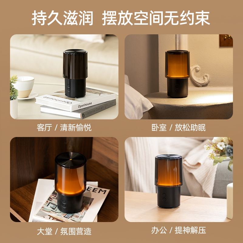 【颜色】白色、黑色 【材质】ABS+PP+PC 【重量】312g 【水箱容量】130ML 【喷雾量】15mL/h 【产品尺寸】96*196*180mm 【包装尺寸】98*98*183mm 【输入电流】5V-2A 采用差声波雾化器,通过震频将液态水分子打散细致冷雾保留下精油芬芳成分 即是香薰机,也是氛围灯,3重灯效模式,营造浪漫氛围 2档喷雾,高低档随意切换,香味持久不疲劳,低雾档维持湿度及香味,高雾档快速加湿及扩香 桌面不留积水,底部防滑,多场景使用